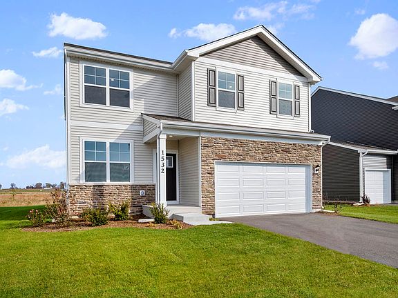 Move-in ready new construction home at Cambridge Lakes Clubhouse community!! Private homesite backs to open space and pond! The Bellamy plan is an open concept, two-story home, featuring 4 large bedrooms, first floor flex perfect for office or den and 2.5 baths. The home has 9' ceilings on the main level and features a staircase situated away from the foyer for convenience and privacy. The kitchen is open and airy with white cabinetry, a large walk-in pantry, quartz white countertops, and oversized island great for entertaining. The entry from the garage has a large drop zone area conveniently located for coats and jackets. Welcoming you upstairs is the large primary bedroom suite with a walk-in closet, ceiling fan rough-in, and plush carpet. The primary suite has a private bath, dual comfort height vanity sinks, oversized decorator mirror, designer plumbing fixtures, and a walk-in shower. The laundry room and secondary bath are conveniently located on the second floor right next to the additional bedrooms. The home includes a full basement. Professional landscaping, fully sodded front, side, and back yard. District 300 schools! All D.R. Horton Chicago homes include our America's Smart Home Technology which allows you to monitor and control your home from the comfort of your sofa or from 500 miles away and connects to your home with your smartphone, tablet or computer. Home life can be hands-free. It's never been easier to settle into new routine. Set the scene with your voice, from your phone, through the Qolsys panel which you can schedule it and forget it. Your home will always await you with your personalized settings. Our priority is to make sure you have the right smart home system to grow with you. Our homes speak to Bluetooth, Wi-Fi, Z-Wave and cellular devices so you can sync with almost any smart device. Builder Warranty 1-2-10. Interior photos of model home and actual home. Exterior photo of actual home. LIMITED TIME UP TO $10,000 IN SETTLEMENT COSTS WITH DHI MORTGAGE!!!