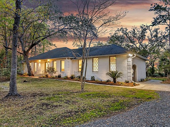Welcome to your idyllic waterfront haven! This beautifully renovated ranch-style home showcases stunning marsh views, framed by the graceful canopies of live oak trees. Your private waterfront dock provides an exclusive retreat for boating, kayaking, fishing or wildlife viewing. Upon entering, you'll be greeted by an airy, open-concept layout that floods the home with natural light, highlighting the elegant hardwood floors, custom cabinetry, and exquisite trim work that defines the space. A chef's kitchen is complimented with stainless steel appliances and an Italian Marble Island designed for entertaining and gathering. Step outside to a sprawling composite deck that offers tranquil vistas of the water, perfect for morning coffee or evening sunsets.With 3 spacious bedrooms & 3 luxury baths and a versatile FROG (Family Room Over Garage) on a generous .86 acre lot, this home perfectly marries comfort and sophistication. Embrace the charm of coastal living! Additional features include a brand new HVAC system, fireplace and fresh paint inside and out ensuring both comfort and a modern aesthetic.