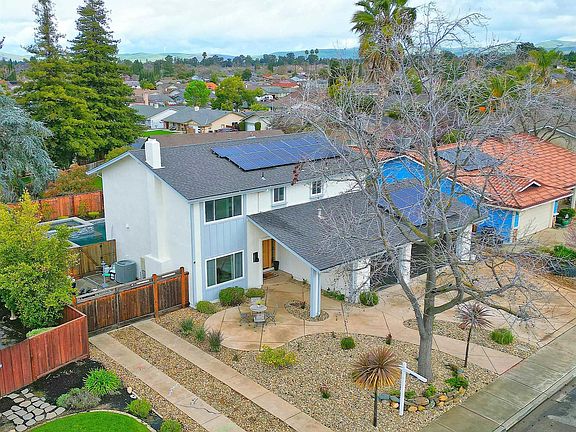 Entertainer’s Delight! Enjoy a private resort in your own backyard. Your oasis includes an expansive custom designed pool and spa, gas fire pit, exterior lighting and spacious Gourmet outdoor kitchen pavilion.The home’s grand entrance with gorgeous front door leads you in and welcomes you with an impressive staircase and stunning wood floors. The beautiful remodeled kitchen has abundant storage with upgraded cabinets, stainless steel appliances and island to prepare your favorite recipes. Upstairs has a total of four bedrooms and two bathrooms. Relax in your expansive primary suite with sweeping views of the Livermore foot hills . Watch your favorite movies and sporting events in your personal man cave ! Many additional upgrades including new paint and carpet , recessed lighting , finished garage with epoxy floors, Leased SOLAR, side yard access , upgraded electrical and gas meter. Enjoy the phenomenal views of the Livermore hills , Mt. Diablo and breath taking sunsets ! The kids will love Karl Wente park just across the street and walking distance to top rated SunSet school. Downtown Livermore ,Parks , wineries or the Wente Golf Course all just a short drive ,easy access to 84