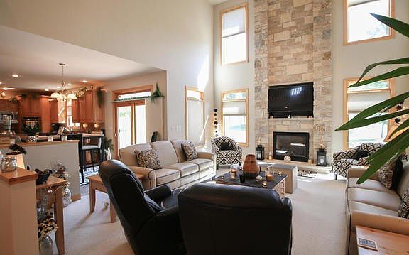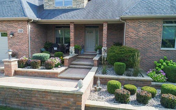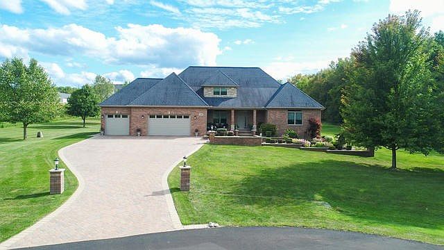 Custom built, perfectly kept and decorated, describes this 5 bedroom 3 full bath 1.5 story home situated on a 1.57 acre lot in a cul-de-sac within Hidden Bluffs subdivision. Professionally landscaped with mature trees. Paver brick porch and driveway. Stamped concrete patio. Open floor plan, staircase and foyer. Formal Dining room. Great room with volume ceilings, stone gas fireplace and floor to ceiling windows. Amazing custom kitchen complete with granite counter tops,maple wood cabinets, stainless steel appliances, island and eating area. First floor Master Suite with sitting area, walk-in closet and private bath with whirlpool tub and large tiled walk-in shower. One additional bedroom on the main floor and 3 bedrooms upstairs with bridge and third full double sink bathroom. Floors are Italian Porcelain tile, maple hardwood and berber carpeting. Unfinished lower level with garden windows. Perfect for future finishing and roughed in for bathroom.