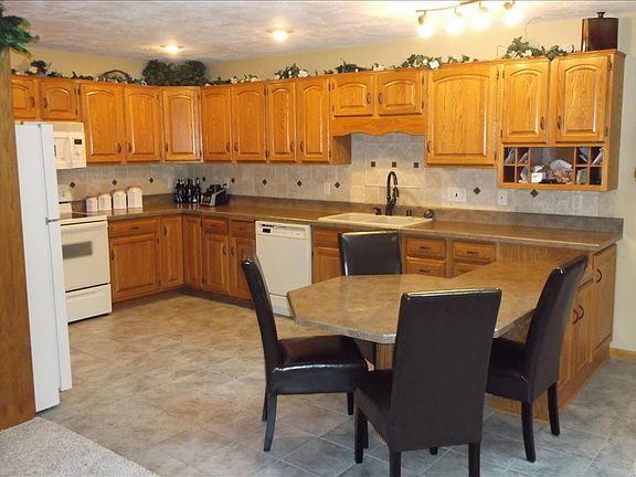 Large, meticulously maintained and updated home. Open concept kitchen with breakfast bar and open living room. 4 large bedrooms all with double closets. Master bedroom has attached bath with walk-in tile shower, double sinks patio doors and private deck. Remodeled hall bathroom with granite sink top. Updates include brand new carpet & paint throughout, updated kitchen, newer siding, windows and roof. Lower level features a wood stove, a bar area with sink and kitchen appliances for entertaining. Plenty of closets and storage. Huge 3.5 car garage with 20x12 heated shop area off the back. Fenced yard. Town taxes.