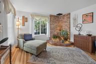 Travertine stone gas fireplaceVaulted ceilingsSpacious courtyardCorner lot