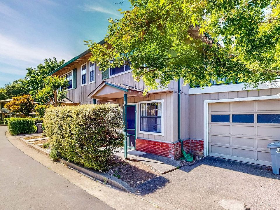 Wonderful end-unit townhome boasting attached garage and large upstairs deck! The 2nd floor has brand-new flooring, including the stairs. The kitchen and bathrooms have beautiful vinyl plank flooring. The interior has been freshly painted. The kitchen, living, and dining room create an open floor plan with a patio that extends the living space. Laundry is conveniently located in the garage. Unwind on the generous and serene deck nestled amidst the trees. This peaceful complex is a rare find with its mature landscaping and sparkling community pool. Located in a great neighborhood, close to downtown, JC and Town & Country shopping center.