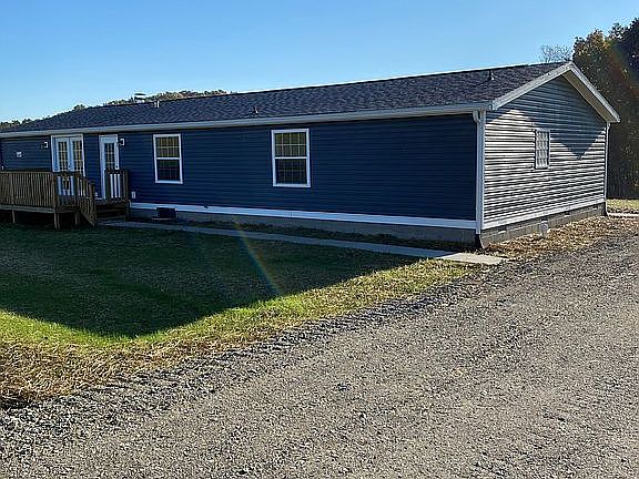 This home is located on 2.3 acres and has 6" exterior walls for better insulation during heating and cooling seasons. It has been completely remodeled with new windows, interior doors, paint throughout, kitchen and bath countertops, LED lighting inside and out, vinyl plank flooring main living areas and baths, carpet in bedrooms, heat pump/electric furnace with 10 year warranty, vinyl siding, new roof, front porch and back deck. The eat in kitchen has a lot of cabinet space with a center island bar, nice sized pantry and appliances are included. The utility/furnace room is just off the kitchen and has a separate entry. The master bedroom has a large walk in closet and the master bath has dual vanities with a garden tub and makeup counter. The master shower is another separate room with a linen closet. The 2 spare bedrooms have nice size walk in closets with the second bathroom in between. Main living area is an open concept and can accept just about any furniture layout. AEP electric, TP-C water, and a new on site septic system.