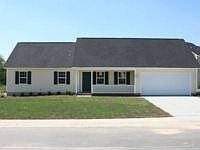 "The Andes" 4 Bedrooms, 2 Bath, Vinyl Ranch, Double Car Garage, Covered Front Porch, Kitchen with Dining Area, Family Room with Fireplace, Pantry and Laundry Room.
