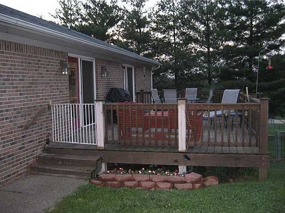 Spacious all brick ranch with full walk-out basement and 40x24 pole barn just minutes from Evansville's west side, and close to the Saint Phillips area! This home has been lovingly cared for, and with .61 acres, you will have room to breathe. The large Living Room is full of light and has plenty of room for gatherings. The well-planned eat-in Kitchen has an abundance of cabinets and counterspace, 2 lazy-Susans, nice pantry, small bar area, trey ceiling that adds spaciousness, room for a large table, and double doors to the deck. The Master Bedroom also has doors to the deck, easily holds a king-size bed, a private bath with wide vanity, linen closet, and walk-in closet. Bedrooms 2 and 3 also have nice-size closets, and are served by the hall bath, with a walk-in shower, easily accessible by a wheelchair. The Laundry is also on the main floor, and has a big storage closet for cleaning supplies, overhead cabinetry, and a window. Fabulous full unfinished walk-out basement adds endless possibilities to this home! There is a 3rd full bath with a luxurious jet tub, patio doors lead to a fenced portion of the backyard, a big closet that would be an ideal storm shelter, and more Bedrooms and/or a Family Room could easily finish it off. The large deck off the back of the house, with access from the dining area and Master Bedroom, adds outdoor living space, and has a lovely view of a patch of woods behind the property. The 40x24 pole barn has a double-wide door plus a service door, with lots of space for a workshop area in addition to parking. There is another parking pad on the south side of the barn, and a storage shed behind. Updates per owner include: septic system 2013, roof 2010, hi-eff furnace 2009, C/A 2007, windows all since 2004, 50 gal water heater 2003, and more!