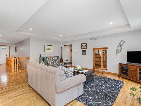 Wonderful ranch-style home with plentiful space throughout! Gorgeous hardwood flooring with an open concept kitchen, dining and main living area. Newer paint throughout, custom primary closet, new landscaping (2023), addition of new basement bathroom (2022) fit with a marble top vanity, new (2024) select exterior doors, and newer (2019) roof and gutters make this home move-in ready! Solid wood cabinets in the kitchen and solid-core doors throughout, custom dimmable lighting, a full finished basement with storage, and a private green backyard round this top-tier ranch home off.