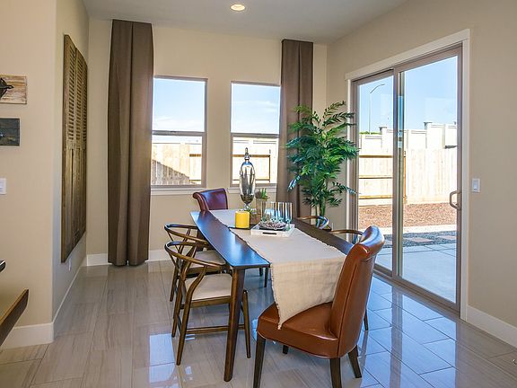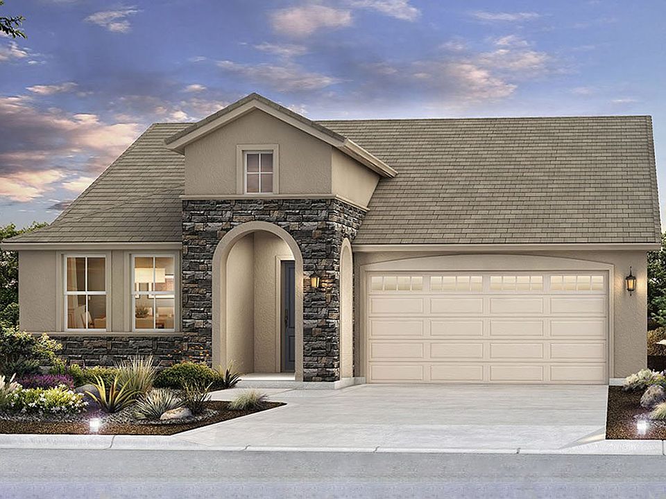 The Carmel is a charming single-story of 1,675 square feet.. The home is ideal for those looking to downsize or making their first home purchase. Our smallest floorplan lives large with 10 foot ceilings, 8 foot interior doors, an oversized entry door, and a spacious great room featuring a cozy and convenient fireplace with optional stone accents. The gourmet kitchen is a chef's delight, featuring five color options for granite slab kitchen countertops, premium Bosch stainless steel appliances, stunning tile flooring, two-tone paint in warm or cool tones, and walk-in pantry - all standard features at Santana Ranch by Anderson Homes. The offset dining area features a sliding patio door. The private master suite features a large walk-in closet with built-in organizers, separate shower, and luxurious Kohler soaking tub. Master and guest bathrooms include one of four standard piedrafina selections for shower surrounds and vanities. Energy efficient features include drought tolerant landscaping, solar pre-wire, tankless water heaters, and more. The Carmel features a total of three bedrooms, two bathrooms, and a 2-car garage.