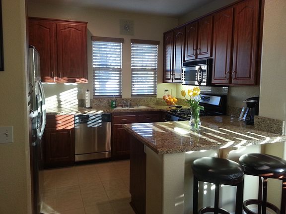 Traditional Sale. Walking distance to the mall, freeways, schools and more. Approx 1,491 square feet with two car garage. Must see this beautiful house 3 beds 2.5 bath. New kitchen cabinets. Kitchen, master bedroom and upstairs second bath with nice tile floor. Living room with new cherry wood laminate floor. Other rooms and stairs with almost new carpet . Inside looks brand new.