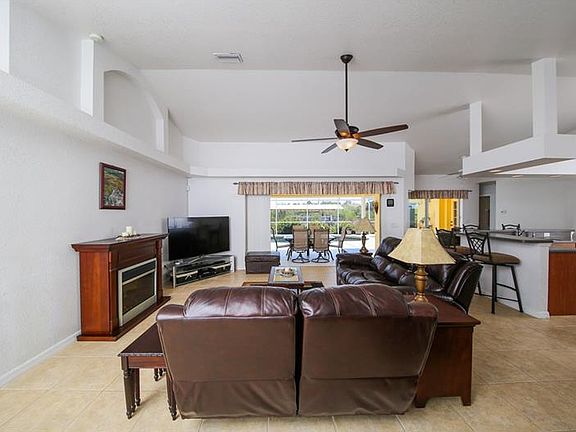 Resort style living at its best! This luxurious South Gulf Cove Home is located on a waterfront lot with Gulf of Mexico boating access and a coveted Southern Exposure! Hear the steel drums play when you see the well-manicured lawn with tropical landscaping leading to this magnificent home, and the stunning water backdrop. Step through the columned screened entrance and elegant double doors to your million dollar water view straight ahead, through the living room sliding glass doors, past the saltwater heated pool & screened lanai. The quality shows with every detail - high & vaulted ceilings, French doors to the bonus room, separate office, decorator lighting, art shelving, and so much more. The spacious gourmet kitchen is a chef's dream with high-end stainless appliances, a double oven, and a wrap-around breakfast bar; the perfect place to convene for morning coffee. The split floorplan features a guest wing, giving you privacy to wake to amazing water views in your Master Bedroom. Have breakfast in the nook with the large aquarium window overlooking the pool & lanai while you plan your day. Relax by the pool, fish off your private 40' dock, or launch your boat from your covered boat lift for a day of boating. The pool and hot water are solar heated, with a pool heat pump for backup. The hurricane shutters, security system, underwater dock light, and forced hot water are just the icing on this very decadent cake. Don't wait. This is THE home people dream about when they think about life in paradise!