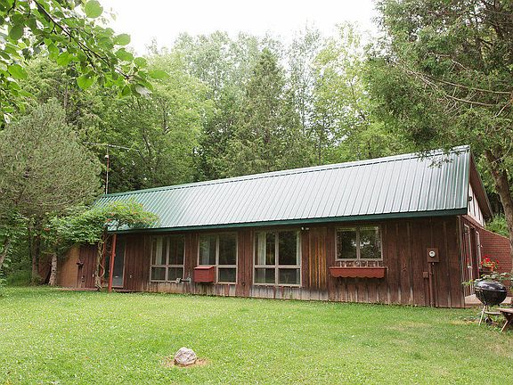 Secluded 3 bedroom earth sheltered home on wooded 8.01 acres. 2 acre spring fed pond, open lawn area for gardening, or field for livestock. Detached 2.5 car garage and workshop with greenhouse also shed and sheepfold. The home is bermed on the north side with full windows along south side of home. Private deck off master bedroom. Peaceful walking trails throughout wooded acreage.