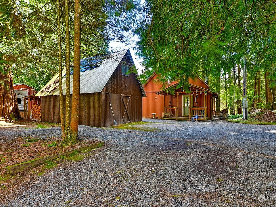 This country home has been in the family for decades. Private, quiet and so much to offer! Inside, a cozy woodstove for winter evenings, master BR on the main & full bath w/ laundry. Tongue and groove cedar ceilings, kitchen with nice cabinetry, slider off dining room to rear deck and a loft and 2 additional BR's up. Beautiful property w/ trails throughout, seasonal creek, large yard area & much more! Gazebo, hot tub and fire pit area. Large outbuilding next to home has power, water, tons of shelving and a ladder to a bonus room above. Separate 14x16 garden shed, complete RV hook up, 3 bay shop + workshop for all of your projects! 220 in the outbuilding + shop. 3 stall barn, dog run, chicken pens, generator hook up too. Must see!!!