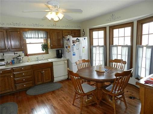 Lenexa Home with Tile entry, New hardwoods through kitchen, great room & stairs. Anderson replacement windows. Large eat in Kitchen with bay window & pantry. Three full baths. Lower lever Family Room. Super sized deck w/ Gazebo. Quiet location on cul-de-sac street w/quick access to I-435. Call & See Today!