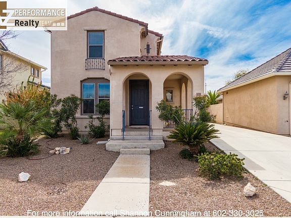 Charming home in the desirable Marley park community. Enjoy your morning cup of coffee out on the front porch and enter in to over 1600 square feet, pristine tile floors, extra storage under the stairwell and large family room for entertaining guests. The eat-in kitchen includes a custom stone backsplash, recessed lighting, a gas range and a plethora of cabinetry hat completes the main floor. On the 2nd floor, are 2 spacious bedrooms and the master suite with access to a private balcony. Out back has the perfect spot for a firepit or BBQ grill with low desert landscaping to tie it all together. Add this one to your must see list today!