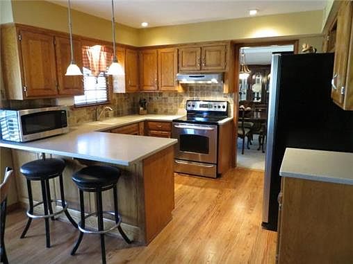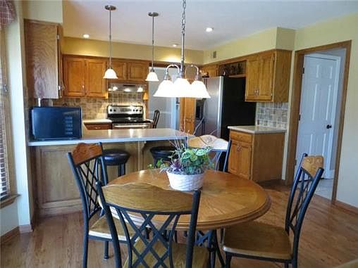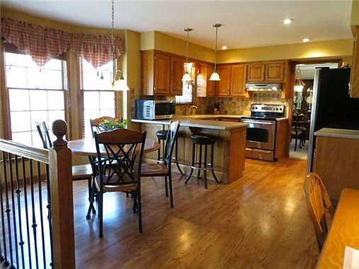 Absolutely gorgeous and well-cared for home! Many updates include wrought iron-splindles*refinished hardwoods in kit/breakfast area*cozy family room w/ gas fireplace*Travertine MBA & upstairs hall bath*Corian counters & sink*stainless stove & hood fan*planning desk in kit*new lighting throughout*new lever door handles & hinges*1st floor laundry*main level office space*popcorn ceilings removed! Finished recreation room in basement & lots of storage! Beautiful deck in backyard* Backs to greenspace maintained by HOA!