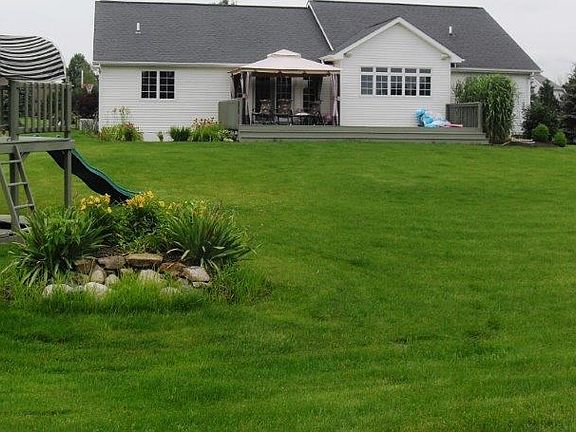 Location! Location! Location! This beautiful four bedroom ranch in Leo, Indiana is over a full finished basement and is located just one half mile from Leo High School, and .75 miles from Leo Elementary. The large half acre lot provides many recreational opportunities and includes many perennial plants and newly mulched landscaping. Inside the home has an open concept living room and kitchen with abundant natural lighting and Grabill Cabinetry. A gas fireplace with mantle and surrounding built in shelving is the centerpiece of the living room. A large kitchen island provides additional seating for four and adds additional counter space for entertaining. The split level layout of the main floor has a master bedroom on one end and two bedrooms at the opposite end. The master bath has a Jacuzzi Tub, double sink, tiled floor, and walk in closet. The basement is a very large open space with a 120 inch HD home theatre screen and built in surround sound speakers. The basement also includes a spare bedroom with landscaped retaining wall window view. The oversized two car garage is shelved on two walls with lots a storage. A large walk-up attic makes for easy access to your stored items. The back yard has a large deck wired for sound and finished with a ten year deck-over coating applied just last year. The home has a new water heater, and new Bosch dishwasher in the kitchen. An unfinished bar with seating for six in the basement needs only finish work on the bar tops to complete. All wiring and plumbing are run to outlets. Invisible Fence wiring is run around the property with hook-up in the garage. A low maintenance water back-up sump system keeps the basement dry and moisture free. The home was built with a 30 year roof and includes a Manabloc plumbing system. Appliances are negotiable.