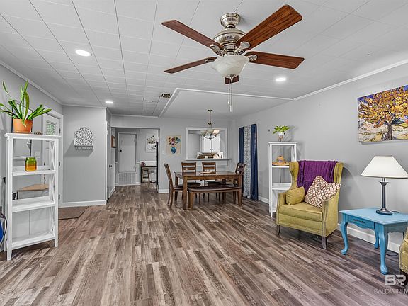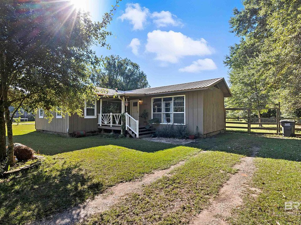Welcome to this inviting 4-bedroom, 2-bath cottage nestled on a spacious 1.6-acre lot in the peaceful countryside of Foley, Alabama. This property offers the perfect blend of rural charm and convenience—just a short drive to Gulf Shores, shopping, and dining. Step inside to find new luxury vinyl plank (LVP) flooring throughout the living room, dining area, and kitchen, creating a warm and modern feel. Mature trees provide shade and privacy, while the fully fenced yard offers plenty of space for entertaining or gardening. A unique highlight of this home is the separate living area at the back of the house, complete with its own bedroom and living room—could be used for guests or in-laws. Outside, you'll find a pole barn for additional storage or workshop needs. Per Seller age of HVAC is 3-4 years, the age of the dishwasher is 1 year, and the age of the water heater 2-3 years. Well water & Septic tank making for low cost utilities! Sold as-is, this home is ready for your personal touch. Don’t miss this opportunity to own a piece of quiet country living, with city conveniences just minutes away! Buyer to verify all information during due diligence.