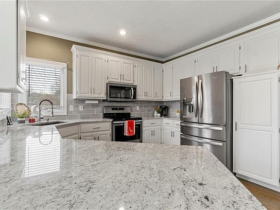 Delightful 2 Sty home in the sought after Blue Valley School district*4 bdrm 4.5 bath on a level, cul-de-sac lot and boasting a spacious 3 car garage*Open floor plan*NEW upper level carpet*Designer stair carpet*Eastern sunlit breakfast and great rm w/gas FP*Laundry & 1/2 bath on main level*Separate living/dining/home office rm at front*Fresh kitchen with updated: white cabinets, granite countertops, newer tiled backsplash & SS appliances*All bdrms on 2nd level include vaulted ceilings*Expansive Mstr suite w/enormous walk-in closet and built-ins*Spacious and open backyard w/wooden fence and patio*Situated between Heritage Park and Blackbob Park w/ walking access to both!