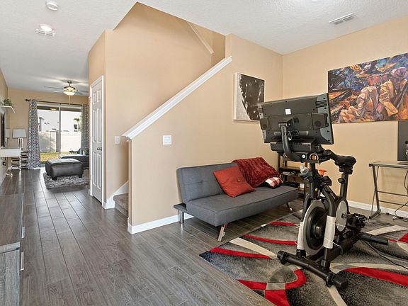 This recently painted spacious home is move in ready! Upon entering the home, you are greeted with a flex space which then flows into the modern open design living space which features upgraded ceramic tiles. Be greeted with a modern kitchen that features an island, upgraded countertops and 42" cabinets with crown molding. The first floor also features a half bath, access to 2 car garage from a separate hallway, as well as a covered patio. Venture to the second floor and be greeted with a loft for a bonus living space. Fall in love with the privacy of the spacious owners retreat including high tray ceilings. The master bathroom includes dual sinks, upgraded countertops, upgraded tile and access to a large walk in closet. The second floor also boasts the convenience of Laundry room area and second and third bedrooms with walk in closets. Location, location, location. Located just minutes from the SR-417 and 2 miles from the Florida Turnpike allows easy commute. Enjoy access to Lake Nona (10 mins) Downtown Orlando(25 mins) Walt Disney World resorts(15 mins) Universal Studios (20 mins) and Orlando International Airport (10mins) this location is perfect. Schedule your tour today! First month last month and security deposit required no smoking no evictions background check and credit check required 600+ credit