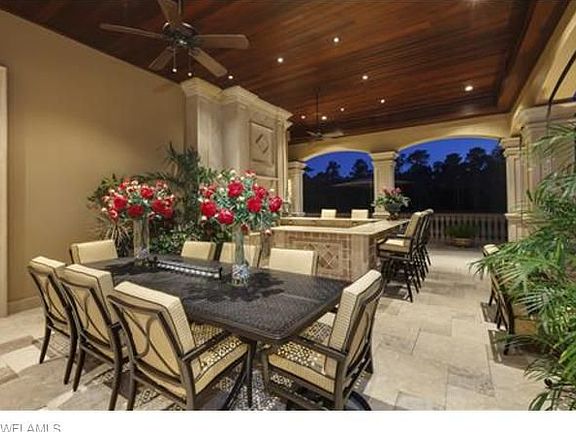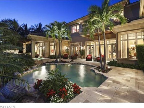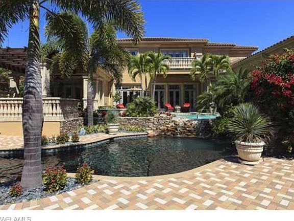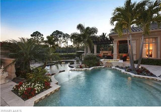 H.7577 - Radiantly beautiful & masterfully designed with a grand total of 13,897 sq ft. this Mediterranean estate presents glorious lake & golf vistas from multiple private decks, patios & terraces opening from two levels. Breathtaking outdoor spaces include rock waterfalls, multi-level pools & deck areas with summer kitchen, pergolas, & two fireplaces. Dramatic details & superb finishes include groin vault, coffer, tin, beamed & elaborate wood embellished ceilings, magnificent stairway, venetian plaster walls, & marble flooring. Amenities include a fully appointed wine cellar, wet bar, chef's catering kitchen, state of the art appliances, & butler's pantry. Lavish master suite, is replete w/sitting area, morning bar, his & her marble baths, dressing areas, and private terrace. A handsome paneled study with fireplace is nearby. A second office/study is located in the east wing. State of the art security, invisible screens, Crestron AV system, elevator, generator & 4 bay AC garage.