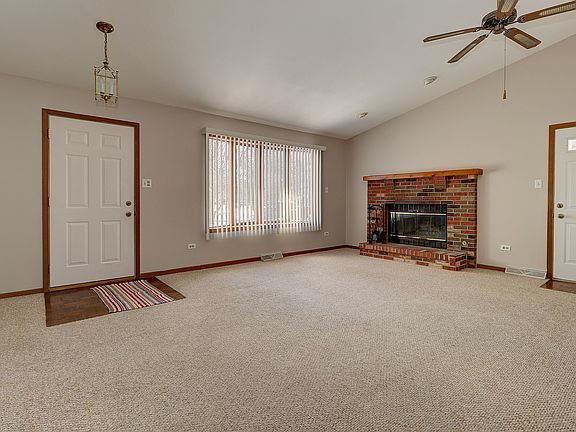 Ranch duplex available for rent! Close to downtown Plainfield, Schools, shopping, forest preserve. Open floor plan offering a large living room with cathedral ceiling & fireplace. Kitchen with island, 2 pantries. Large dining area. Owners' suite offers a 1/2 bath, ceiling fan. Spacious 2nd bedroom. Deck opening to a private back yard with lots of nature. 1.5 car garage. New flooring in bathrooms and kitchen. Plainfield North High School. Lawncare included in rent.