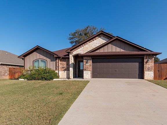 Step inside this beautifully designed 3-bedroom, 2-bathroom home in the desirable Mission Oaks community and you’ll immediately notice the thoughtful details that set it apart. Built in 2019, this home offers 1,800 square feet of open-concept living with clean lines, crown molding, and natural light that enhances the warm and inviting atmosphere. The kitchen is both functional and stylish with granite countertops, a large island, stainless appliances, and an oversized walk-in pantry that provides plenty of storage. The primary suite is split from the secondary bedrooms, offering privacy along with a spacious walk-in closet and a spa-like bath. Everyday living is made easier with an oversized laundry room and smart home features including a Nest thermostat, garage door opener, and lighting controls. A covered back patio extends the living space outdoors, while mature hardwood trees in the backyard provide natural shade. Energy-efficient windows and modern finishes complete this move-in ready home in highly regarded Lindale ISD.
