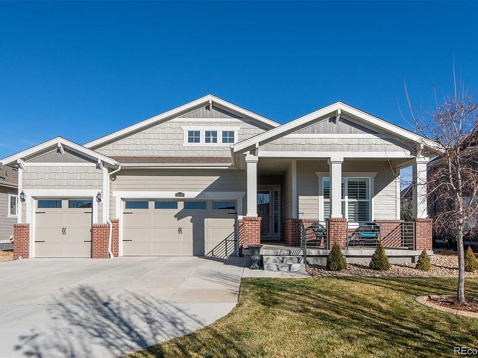 SPECTACULAR HERITAGE TODD CREEK RANCH HOME. VERY DESIREABLE 55+ COMMUNITY WELCOMES YOU TO A TRULY BETTER THAN NEW HOME! TRUE PRIDE OF OWNERSHIP AT EVERY TURN. UPDATES THROUGHOUT. 9' CEILINGS, GAS FIREPLACE, MASSIVE KITCHEN AND GREAT ROOM WITH ALL APPLIANCES INCLUDED. SPACIOUS MAIN FLOOR MASTER WITH OVERSIZED SHOWER, WALK IN CLOSET AND CONVENIENT LAUNDRY FACILITY ACCESS. PLANTATION SHUTTERS! ATTACHED THREE CAR FINISHED GARAGE WITH BUILT INS, COATED FLOOR AND IS A TRUE MUST SEE. INCLUDES 220V ELECTRIC AS AN EASY MOD FOR EV CHARGING AS DESIRED. COVERED FRONT PORCH, HUGE COVERED DECK AND A PRIVATE CUL DE SAC SETTING. THE UNFINISHED BASEMENT IS FULL AND READY FOR ANY USE YOU COULD DESIRE. HOMES OF THIS QUALTY ARE RARE, YOU WILL NOT BE DISSAPOINTED HERE!