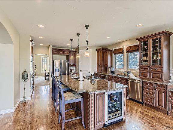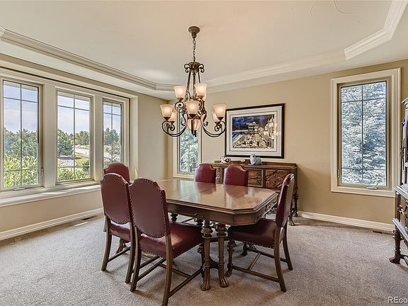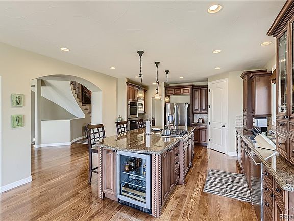 Custom 2 story with walkout basement on 1.32 acres with un obstructed views. Private cul-de-sac corner lot which backs to acres of open space. Solid Alder wood doorsteps into a grand foyer with natural wood floors curved staircase vaulted ceilings. The formal dining room overlooks the sparkling water feature. Gourmet kitchen boasts of custom cabinets, granite countertops, walk-in pantry, 2 dishwashers, huge island with breakfast bar perfect for a real chef and baker. The nook area steps out to one of the 4 decks overlooking acres of open space and walking trails. The living room has one of 4 stone fireplaces with an abundance of light and views. Main floor office with milled woodwork, private deck and fireplace making it comfortable to work. Master suite is the perfect private oasis. Large bedroom with a stone fireplace and private deck with views. Also the comforts you demand are here in your master bathroom, double walk-in closets, heated stone floors, dual shower heads and large soaking tub. The upper-level family room has great views and a stone fireplace. Bedrooms 3 and 4 have a Jack & Jill bathroom, bedroom 2 has its own bathroom and walk-in closet. Professional landscaping and water features and patio make this estate fun to enjoy and entertain. Oversized 4 car garage large enough for all cars and toys. A long driveway gives you enough cars for all your guests to drive to your home. Just steps to the walking trails, private pool, hot tub, tennis courts and pickle ball. A couple of minutes to all restaurants and stores plus easy access to all highways. Highly rated Douglas County schools and private charter schools. Call today to set up your private showing.