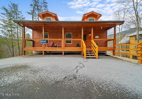 Welcome to your cabin in the Smokies! This beautiful almost new 2-bedroom, 2-bath cabin is located in the peaceful Bluff Mountain Acres community. This amazing cabin is being sold completely turnkey, and is already a money maker. This cabin can be added to your rental portfolio, permanent home, or second home. You have so many options, and there is No HOA. Let's take a tour inside. When you enter the front door you are met with an open and spacious great room with tall ceilings and a floor to ceiling stackstone fireplace. The kitchen has lots of cabinets and counter space with granite countertops, plenty of dining space too. Also on the main floor you have a primary bedroom and full bath. From the main floor you can head out onto the back deck that has lots of wooded scenery, and mountain views too! As you head downstairs you will find a large entertainment area complete with pool table and flat screen tv for hours of fun. On the lower level you will find the 2nd bedroom, full bath, and additional sleeping area complete with bunkbeds. From the game room you can head out onto the second deck and take in the beautiful mountain views from the cozy hot tub. From this deck you can head down the outside staircase and sit around the fire pit and enjoy the nature around you. There's another bonus that makes this one stay at the top of your list. Location! Conveniently located just a short drive to the Parkway, Dollywood, and all that the Smoky Mountains have to offer. *Drone photography used.