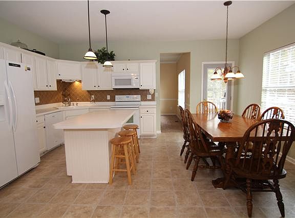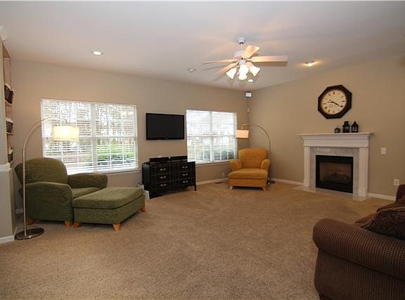 Entertaining deck that looks out to fenced in yard with sprinkler system, Kitchen has large island, tiled back splash & new appliances, new carpet through out the house, Huge great room with marble fireplace & pre-wired for surround sound