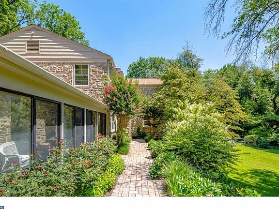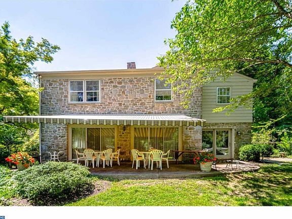 Located on one of Rydal's most coveted streets, this gracious 5 BR 4.5 BA stone-front colonial has a park-like setting & offers a host of amenities with a convenient to everything location! Spacious rooms, beautiful hardwood floors, great flow, abundant windows & ample storage throughout make this home ideal for entertaining or comfortable daily living. Welcoming entrance foyer features coat closet & powder room w/access to the adjacent library/family room & a door leading to a three-season glass enclosed sun porch w/skylights & access to the attached 2-car garage. Formal dining room features a slate & stone island that separates it from the sunny living room w/large bay window & wood-burning fireplace. Both rooms include sliding glass doors out to the back patio with automatic, retractable awning & fenced yard. Eat-in Kitchen has granite counters, gas cook-top w/electric oven, custom cabinets & sliding glass doors out to the patio w/built-in gas grill. Gracing the back corner of the property is the heated Sylvan natural in-ground pool w/adjoining hot tub & pool house. First floor laundry/mud room w/outdoor access includes washer & dryer, utility sink, granite shelves, coat & storage closets plus access to first floor au pair/in-law or guest suite w/updated full bathroom. Beautifully designed, curving staircase leads from foyer to second floor private spaces. Sunny master bedroom has abundant windows, walk-in closet, ceiling fan, spa-like bath w/jetted tub, double sinks, vanity & stall shower. Three more bedrooms share another full bath & a spacious 5th bedroom has its own bath. Basement offers additional storage space plus unfinished recreation room w/recessed lights. Central air conditioning, forced hot air heat & security system & one year American Home Shield warranty are in place. Enjoy living in this private retreat, nestled in a unique neighborhood, while being just minutes from the Rydal train station, Whole Foods shopping center, schools, library, YMCA & more.