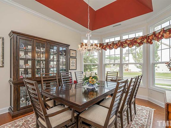 Charming and bright---one story living in Wendell Falls! Kitchen features butler's pantry; white, staggered, recessed panel cabinets with soft close & pull out drawers; GE Profile SS appliances. Office with granite, built in cabinets & desk with separate door. Master down suite with huge tiled shower! Upstairs loft with full bdrm & bathroom. Three season room with EZ Breeze windows. Garage includes Rhino shelving with epoxy floors. Backs to woods and features large yard w/ partial area fenced.