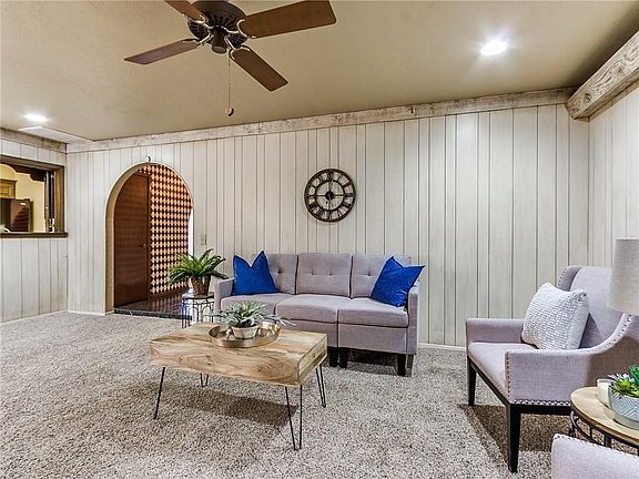 RARE RETREAT! One-owner, 4 bed, 2.5 bath charming home on 1.4 acres (mol) in Edmond with NO HOA. Kitchen has granite, double ovens, cook top, microwave, pantry cabinet with pullout drawers, undermount lights, breakfast bar & spacious eat-in area. Formal Dining room has vintage, gold, tulip chandelier & built-in corner buffet. 2nd living area can be used as sitting or reading area, where you can enjoy the views & abundant natural light from the large windows. Expansive living room has bookshelves & large fireplace. Half Bath is located off the utility room. Master has walk-in closet, full bath, & new storm door for access to Master Suite's own open patio. 2nd bath access from the hall or from 3rd bedroom. 2 car Garage has insulated doors, additional space, access to extended covered deck/patio, New Trane HVAC 2017 & Water heater 2014. Cement walk from back patio to front drive. Part of lot backs to Bryant, with potential for direct access to future workshop. Horses & Chickens allowed!