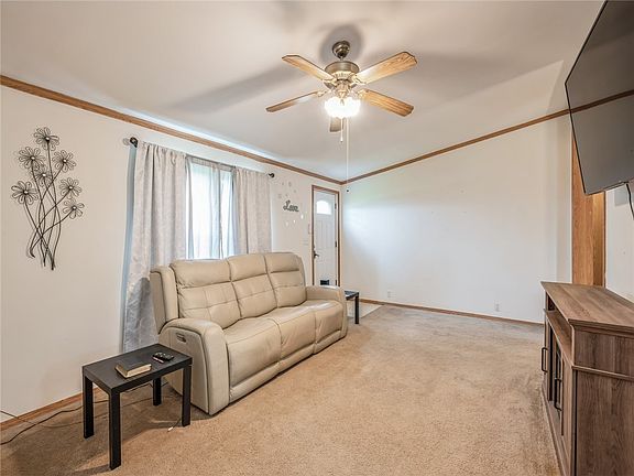 If you're looking for quiet country living with beautiful views, then look no further. This home features 3 large bedrooms and 2 full bathrooms. Each bedroom has its own walk-in closet and the primary bedroom is complete with its own bathroom. The roof and siding on the home were replaced in the last couple years and the air conditioner was replaced in 2023. All appliances, including washer and dryer are included. Seller is including the both TVs attached to the walls in the living room and primary bedroom. Plenty of storage outside with the oversized 26x36 2 car garage and two 10x12 storage sheds, each less then 2 years old. Seller also including the lawn and snow care equipment in the front shed! Call your favorite real estate agent for a showing today!(H-L-V School District.)