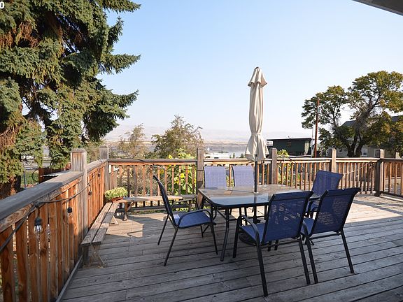 Charming bungalow with stunning river views. Two bedrooms on the main level plus bonus room in the basement. Two bathrooms, mudroom, open kitchen, dining and living area. New deck over looking the Columbia River and The Dalles. New windows throughout. This home is a must see and priced to sell.