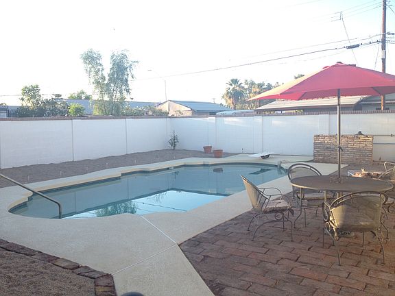 All Interior stucco walls/ceilings painted Aug 2018. 1936 bathroom motif, Arched doorways, 2 built-in corner curio glass cabinets in dining area. French doors to West patio. Working wood fireplace in family room. Dual pane windows on 10'x 23.8' tiled addition +closet that could be used as another bedroom, living room or art space. Newer ceiling fans throughout. Newer faucets. Gas stove. Microwave. Dishwasher. Newer Kenmore refrigerator. Washer. Newer gas dryer. Painted concrete floors except tiled bathroom & addition. Back yard is very private w/concrete block walls w/brick trim. Huge, sparkling diving pool has weekly cleaning service; new automatic cleaner in Sept. Lots of room for entertaining on brick pavers around firepit or lounging. Great investment for rental; $1,200/month. Your Buyers will love this home. Quick access to Rt 51, I10, Sky Harbor airport or downtown Phx. Walk/bike to Coronado or Brentwood historic districts...Coronado park/pool, Phx Country Club. Only addition has dual pane windows. Buyers should verify all information pertinent to their buying decision.