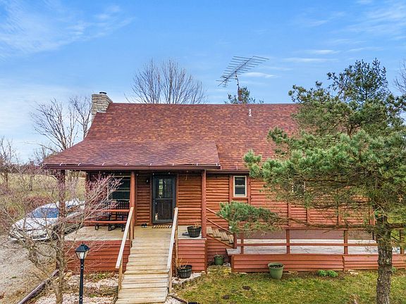 MINI FARM ALERT!!! Are you looking for a cabin in the country sitting on lots of acreage with a large barn, some outbuildings for storage and usable land? Look no further. This is it! The log cabin itself has three levels that give you that cozy country feel and a circular drive tp pull up to. Enoy the views this property offers complete has a storm cellar off to the side of the home. You will have peace of mind knowing it has a newer HVAC and roof along with desirable updates in the kitchen, with addtional plumbing, and lighting improvements. The land lays exceptionally well offering a perfect mix of open pasture and coverage bordered by mature trees perfect for recreating livestock, or gardening endeavors. The barn has its own electric and entrance too. The immediate backyard has been completely fenced in. The home, barn, and outbuildings are turn-key and have been well taken care of by it's current owners. If you have been searching for a property that offers the ability to have animals, recreate with little restriction and not HOA, look no further!