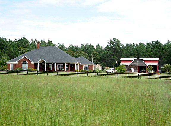Beautiful rolling land, fenced with two barns, surrounding this large brick house with open, flowing floor plan. Very private, yet conveniently located to I-85 and I-l85.
