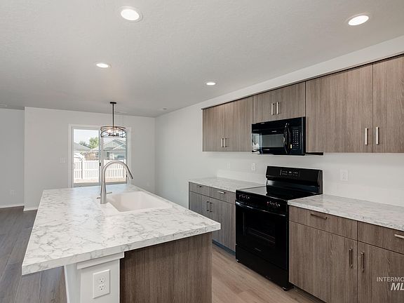 Feel enriched in your brand new home located in Kuna, Idaho! The Hugo 1650 is endearingly charming and reassuringly practical. The main level welcomes occupants and guests alike with open and friendly living spaces. A spacious kitchen island overlooks the living room and dining room. Easy access to the yard is just right outside of the dining room. Head upstairs where a primary suite spans the entire rear of the home and contains a walk-in closet and spacious en suite bathroom. The two other bedrooms and the laundry room are also situated upstairs along with a full bathroom. The garage offers plenty of space to park cars and toys or use as storage. Photos are of actual home!
