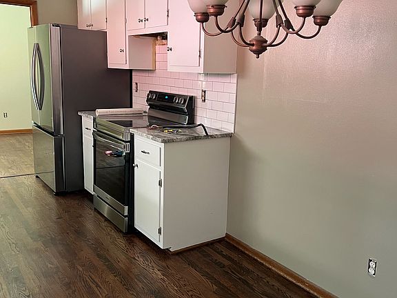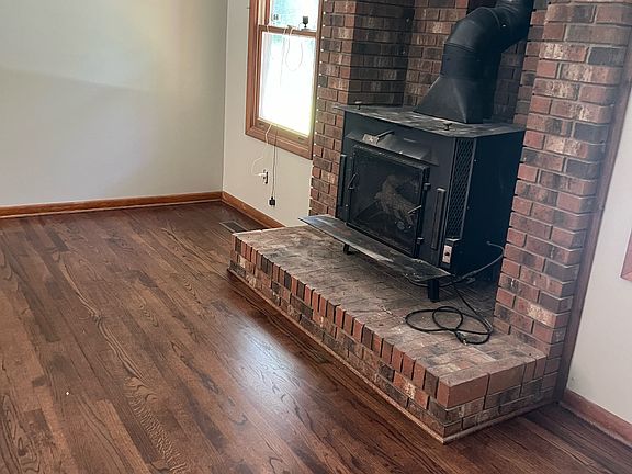 Freshly painted, 3 bedroom 2 bath new kitchen appliances, granite countertops in kitchen and master bath, split floor plan with master on left and 2 bedrooms on right, with large livingroom in middle. Extras screen porch on back patio, with french doors open out into an oasis of trees on 3 acres. Lot of storage - lower level is for storage only, plus shop out back with 3 pole barn parking slots plus an aluminum 2 car parking spaces. Charming older home with all hardwood floors, original fireplace, has central air and heat. Wood siding makes the house hard to find nested in the trees. Make this you own, water, electric and 12 month lease - no smoking in house