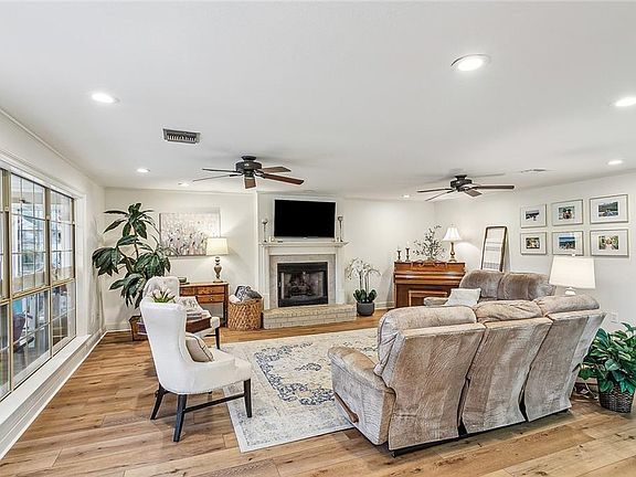This spacious four bed two bath home checks all the boxes!!! Situated on an oversized 75 x 120 foot lot, this thougthfully laid out house is complete with an attached two car garage, renovated kitchen and bathrooms, a massive living room featuring a sleek bar and luxury vinyl floors throughout! Front and back yards have been meticulously maintained with lucious landscaping, irrigation system and subsurface drainage. Relax on your back patio under a newly installed 12 x 16 foot cabana. Upstairs features a large bedroom with ample space for a third full bathroom.