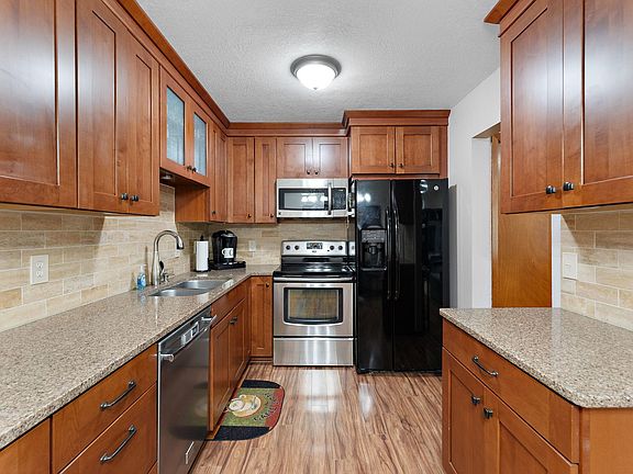 Completely move-in ready end-unit twinhome with no association dues and no size restrictions on pets. This home is packed with upgrades, including a fully remodeled kitchen featuring soft-close cabinets, quartz countertops, tile backsplash, and laminate flooring that extends through the kitchen, dining area, and hallway. The upper-level bathroom has also been remodeled, and new carpet was installed in 2014. Major mechanical updates include a new roof in 2014, a new furnace, electrostatic air filter, and A-coil replacement in 2015. The lower level offers a cozy gas fireplace, and the home features newer appliances throughout. Bright, spacious, and updated—this is a rare find that’s truly move-in ready!