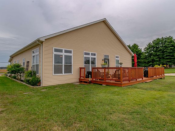 Check out this amazing property located on 2 acres just outside of Boonville. This property offers over 2100 sq ft of finished living space and has an open floor plan with vaulted ceilings throughout. The upgraded kitchen has custom cabinetry with granite countertops and tons of dining space. The master bedroom is 19 x 16 with an oversized bathroom with a soaking tub and walk in shower. Tons of outdoor entertaining space to enjoy this beautiful country setting with both a large open front porch plus huge deck off rear. Currently home has 2 bedrooms(2nd bedroom has detached closet) but the large 14x 20 family room could be partitioned off for a 3rd bedroom if needed. There is a large detached garage with workshop that has 3 bays that can hold 5 cars. So much to offer for only $194,900!!