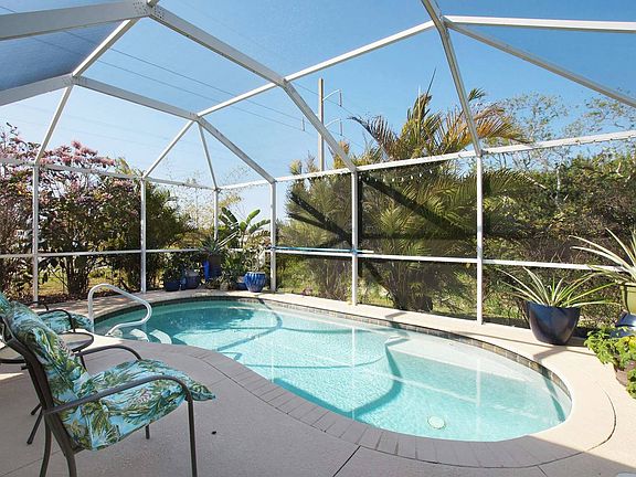 Savor the moments here...whether it's enjoying the pool surrounded by lush landscape or relaxing on the open front porch. This corner lot with mature fruit trees is located in desirable SW Cape neighborhood. A 1700+ sqft. home with an open floor plan and vaulted ceiling offers the feeling of additional spaciousness. This 3 bedroom, 2 bath home also offers the unique feature of a Jack-n-Jill bathroom. The open kitchen with plenty of storage, pantry and white appliances overlooks the living area complimenting the neutral décor throughout. Also included is the washer and dryer. Ideally located to shopping, dining and schools, this house is waiting for you to make it your home.