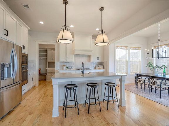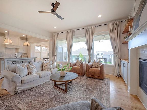 Stunning Inglenook Home by Inspired Homes Custom Builders. This like NEW modern 2-Story farmhouse style dream home is situated on an extra large corner DAYLIGHT lot. Entrance features covered front porch into an open foyer. Main level has guest suite that could function as an in-law quarters, with full bath and gorgeous tile shower. This room could also be utilized as a bedroom or office. Great room has beautiful fireplace, custom NEW built in shelves, NEW built in cabinets and NEW window treatments. Designer kitchen featuring quartz countertops, gas stove, stainless appliances, spacious cabinets, soft close drawers, pull out trash can, giant pantry and eat in bar. Formal dining room with NEW bamboo blinds. Huge master suite on 2nd level with a freestanding soaker tub and zero entry tile shower. Three spacious bedrooms with walk in closets, two full bathrooms and laundry room on the upper level. Finished daylight basement with NEW 2nd office space and 6th bedroom with a full bathroom. Lower level also boasts a family room and rec room. Three car garage with 8 ft insulated doors. Covered composite deck. In-ground sprinkler system with Rain Bird wireless sensor. Amenities include: HUGE community pool, pickleball and basketball courts, playground, walking trails, and off leash dog park. Pryor Ridge Community is conveniently located close to Shopping, Schools and Dining. Access to Highway 150, 50 & 291.