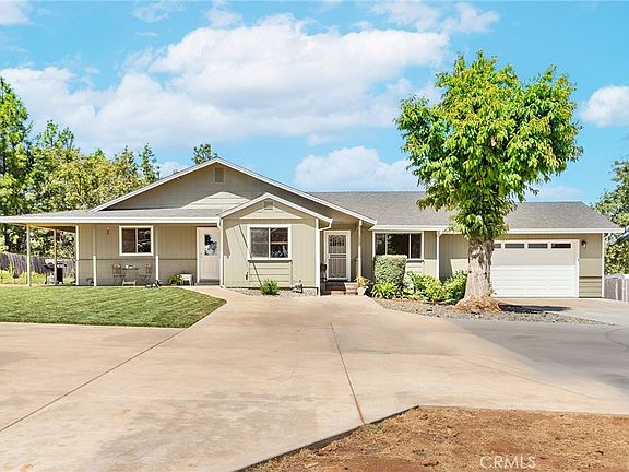 Welcome to your dream HOMESTEAD, where simplicity meets self-sufficiency. Situated on 2 fully fenced and gated acres, this property offers the perfect escape for those seeking a back-to-basics lifestyle. As you step outside, you'll find 13 raised garden beds brimming with a variety of fruits and vegetables, ready for farm-to-table living. The property also features an assortment of fruit trees, including pear, apricot, cherry, and pomegranate, all fully irrigated. A greenhouse in the fenced garden area provides an ideal space for starting seedlings or year-round growing. For those who enjoy fresh eggs, the backyard includes a spacious, fully fenced chicken run with a coop, perfect for raising your own chickens. The house sits on one acre with a separately fenced backyard, perfect for entertaining, featuring a fire pit and an oversized deck for those warm summer nights. The second acre is a blank canvas, flat and ready for your vision—whether it's adding a second dwelling, building a shop, expanding the garden, raising animals, or even subdividing for another home. Inside, the 1,900 sq. ft. home includes 3 bedrooms PLUS a DEN, 2 bathrooms, offering a traditional floor plan that provides privacy without feeling closed off. The kitchen, with white shaker cabinets and ample storage, serves as the home's central hub. The den can be easily adapted to meet your needs, whether as a home office, playroom, or formal dining area. The large living room, filled with natural light from south-facing windows, provides a welcoming space to relax. All bedrooms are generously sized, and the home boasts new LVP flooring and fresh interior paint throughout. An oversized, extra-tall garage offers plenty of storage, and a large shed provides additional space for tools and equipment. A freshly poured concrete driveway adds a touch of modern convenience. Zoned Rural Residential, this property offers the best of both worlds—privacy and space, with the convenience of nearby local amenities. The home is equipped with a Culligan whole-house water filtration system, and it's close to the Savemart shopping center, Children's Community Charter School, and Paradise Ridge Elementary School. Don’t miss this unique opportunity to own a property that truly offers endless possibilities. Come see it today and start living the simple life you've always dreamed of.