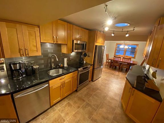 This is the updated home you have been waiting for! Beautiful updated home short distance from Lake Phalen, Frost Lake school, neighborhood park and recreational fields. Updated kitchen with granite counter tops, stainless steel appliances and large island eat-in area off the deck-perfect for entertaining! Newly refinished wood floors in the living room, dining room and bedrooms. Finshed basement with master bedroom , luxury jetted tub.and Family room with gas fire place plus additional storage closets. Unique private back yard includes perennials including lilacs, blackberries and other flowers and plantings. The back yard also has a large two level deck, a stone fire pit and a storage shed.