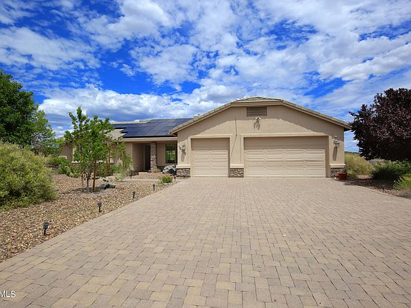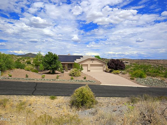 Pass through the gates and enjoy the scenery as you arrive at your tranquil paradise. Views from every room! Enter to soaring ceilings with lots of natural light. Entertain friends and family in the large open kitchen as others relax on the patio taking in the sweeping views. In the mornings have your coffee in the sunroom just off your master. 3 minus to the clubhouse, pool and gym. Watch the squad of javelina that go through the yard as well as the deer, foxes, and quail. Live in a rural area that is just 45 minutes to downtown Prescott and Phoenix and an hour to Sedona. Back gate has access to BLM land, which is great for off-roading and enjoying your toys. Save on utilities with leased solar.