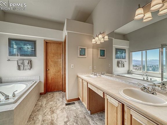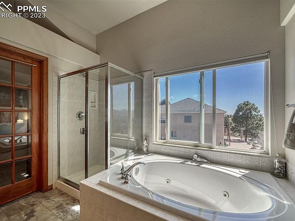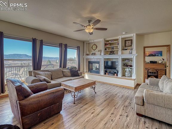 Spectacular Pikes Peak and Front Range Views from every window in this home. The massive wood deck is perfect for entertaining while enjoying great un-obstructed views. The gorgeous kitchen has updated stainless steel appliances, plenty of working space and granite slab counters and perfectly designed for entertaining and gazing at the views. Massive master suite with soaring ceilings and beautiful five piece master bath has fresh flooring and amazing views. The main level study is perfect space for working from home where you can enjoy the ambiance of the two sided fireplace and stunning views while you work. You’ll love all the fresh flooring and updated light fixtures throughout adorning mountain views and an annual Thunderbird Show at the Air Force Academy Graduation from every room. The huge walkout basement has a large recreation room and plenty of space for teens and guests. All five of the bedrooms are very generously sized with an abundance of closet space. The massive attached 3 garage has plenty of added storage and parking. The very well maintained home with central AC offers a great location, award winning Academy School District 20 schools and very close to great shopping.