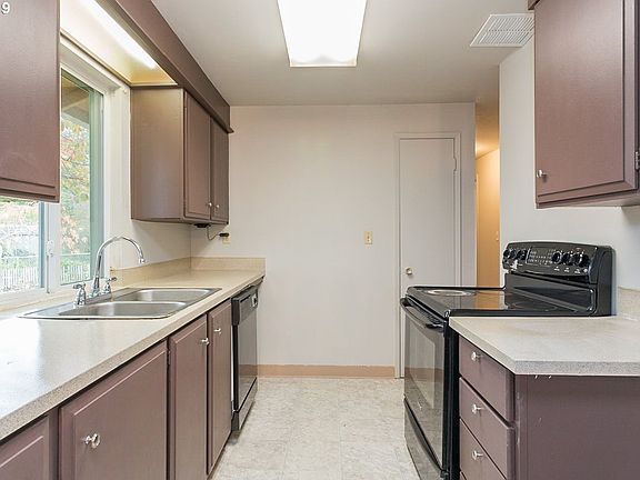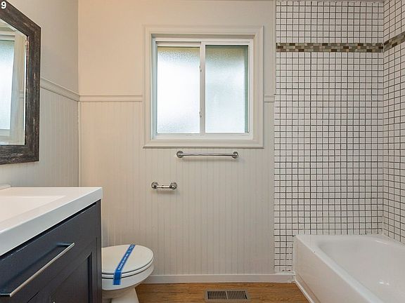 This Portland one-story home offers hardwood flooring, a wood-burning fireplace, a den, a covered back patio, and a two-car garage. [Home Energy Score = 4. HES Report at https://rpt.greenbuildingregistry.com/hes/OR10029468]